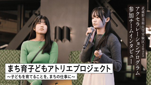 武蔵野美術大学実験区「MAU SOCIAL IMPACT AWARD 2025」で特別賞(NTTアーバンソリューションズ賞)を受賞し、アクセラレーションプログラムに進んだチームにインタビュー。お話を聞いたのは、「まち育子どもアトリエプロジェクト 〜子どもを育てることを、まちの仕事に〜」を提案したチームの代表者・石井美羽さんと多谷咲希さんです。子どもの居場所づくりという原体験から始まったプロジェクトが、地域に実際に飛び込んで形になっていくまでの過程、アクセラレーションプログラムを経験したことで得た気づきなどについて聞きました。